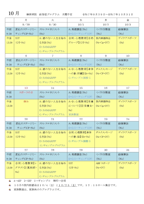 アルコール依存症 入院治療プログラム